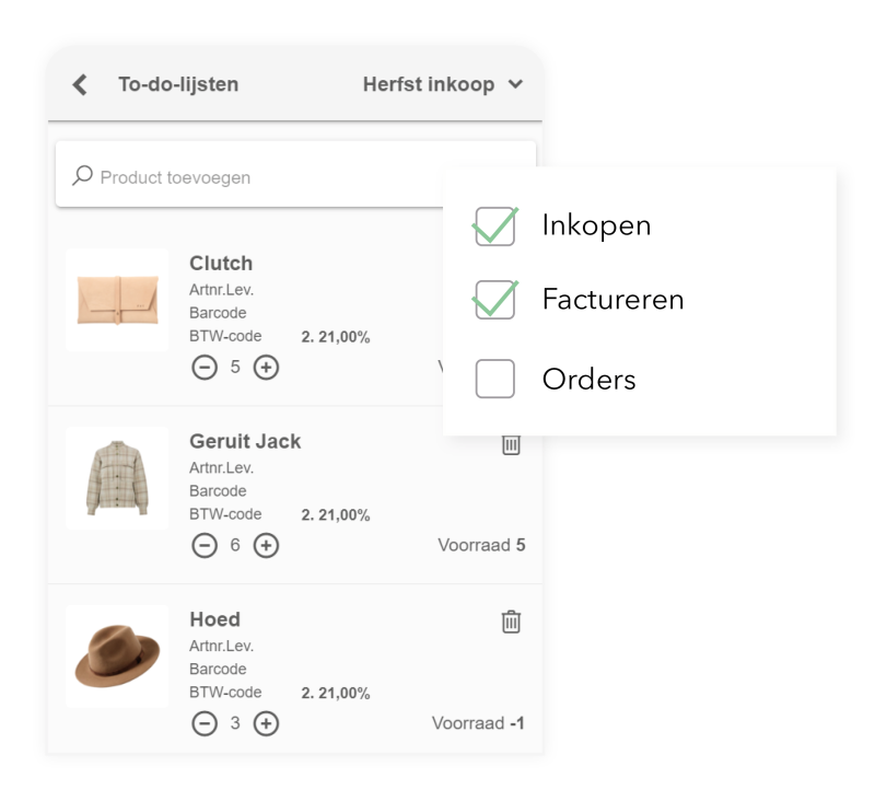 Maak to do lijsten aan met de extra functie in de voorraad app. Scan artikelen en voeg ze toe aan de lijst.